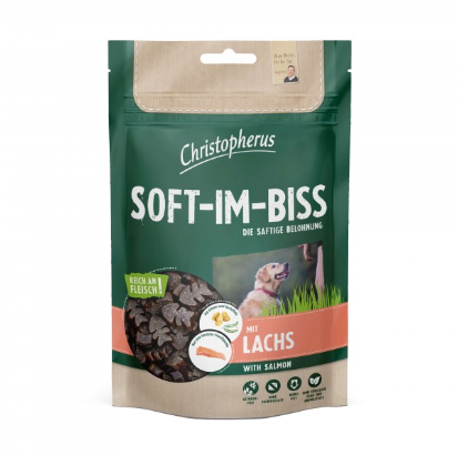 Prima gemacht! Christopherus Soft-Im-Biss mit viel leckerem Fleisch belohnt die besonderen Momente bei Ausbildung, Training, Sport, beim Spazierengehen oder einfach als kleines Leckerli zwischendurch. Getreidefrei und ohne Zuckerzusatz sind die saftigen Happen mühelos zu kauen – perfekt für Ihren Freund fürs Leben.